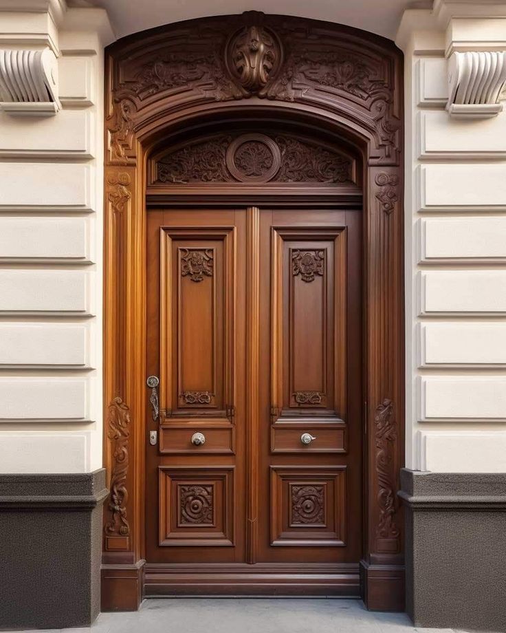 باب خشبي بتصميم كلاسيك من خشب السنديان وحفر ديكور من الخشب الطبيعي