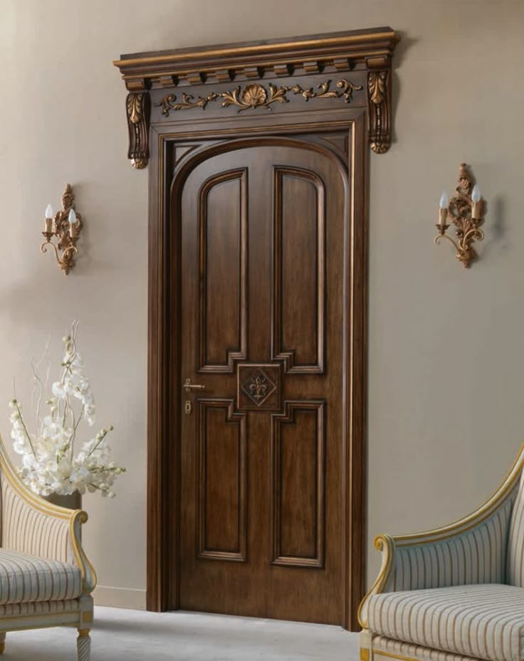 باب خشبي بتصميم نيو كلاسيك من خشب التيك الافريقي